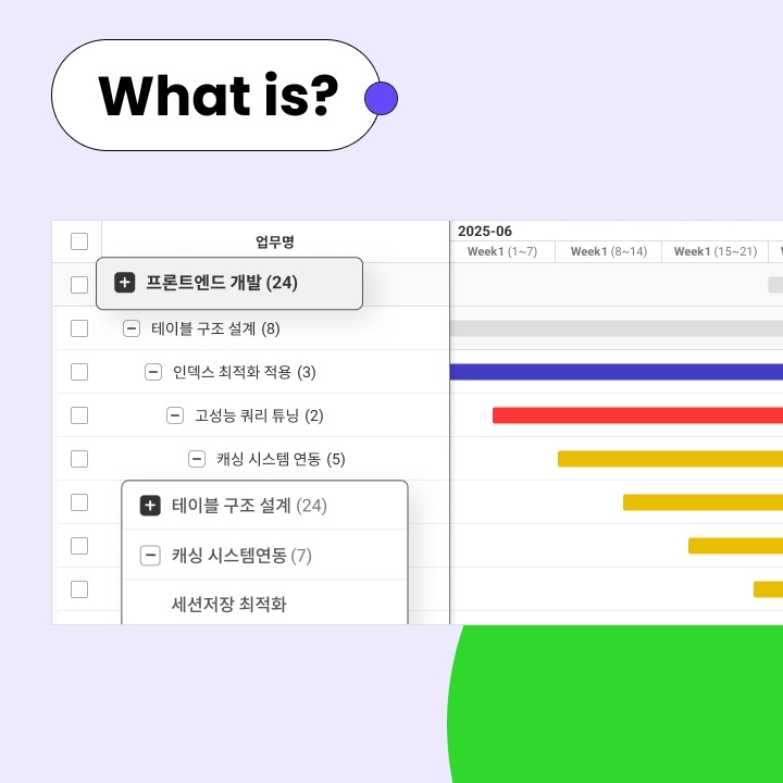 3분 소요 2025-10-24 일이 술술 풀리는 팀의 비밀 ‘WBS·간트차트’ 프로젝트 관리의 성패는 결국 ‘도구를 얼마나 잘 쓰느냐’에서 갈립니다. 그중에서도 WBS(Work Breakdown Structure, 작업 분류 구조)와 간트차트(Gantt Chart)는 팀의 일정을 체계적으로 설계하고 실행하는 데 꼭 필요한 두…