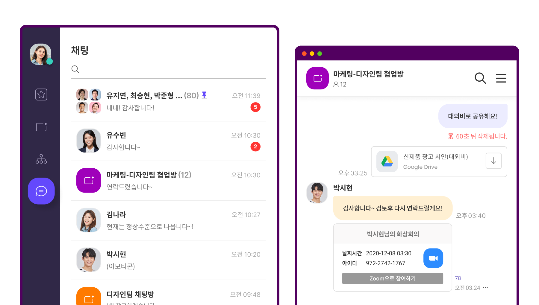 • 플로우는 업무 관리 + 팀 커뮤니케이션을 한 공간에서 제공합니다.  대화에서 바로 업무를 만들고, 그 업무의 진행 상황을 실시간으로 공유할 수 있죠.  툴을 오가며 생기는 맥락 손실이 없습니다.