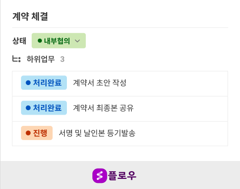 영업 워크플로우를 구축하는 과정은 복잡하지만, 플로우(Flow) 같은 협업 도구를 활용하면 훨씬 간단해집니다. 플로우는 프로젝트 관리, 실시간 커뮤니케이션, 자동화를 한곳에 모아 팀 전체가 효율적으로 움직이도록 지원합니다.