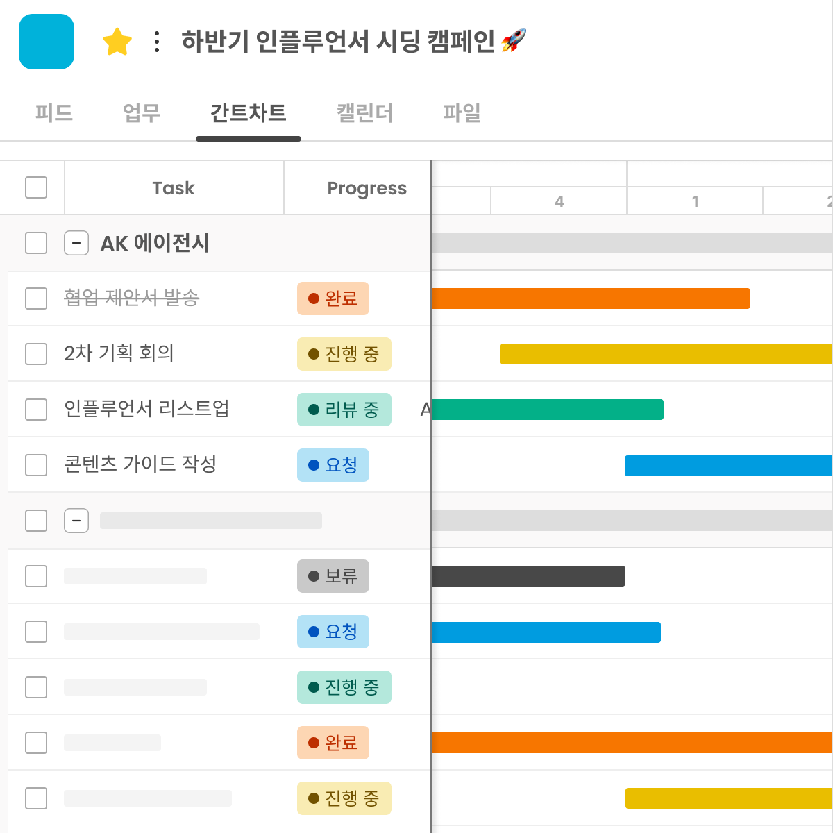 - 업무 가시성: 담당·마감·진척을 보드/타임라인으로 한눈에